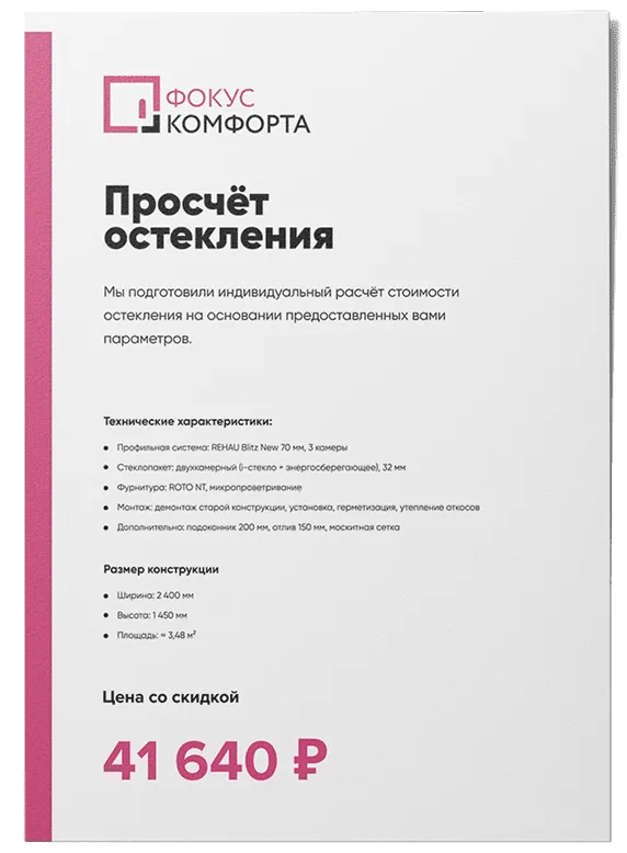 - Профиль: Rehau (немецкое качество, высокая теплоизоляция)
