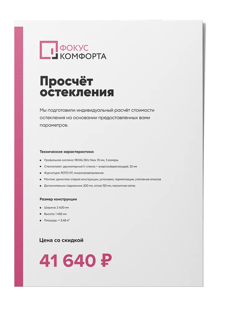 - Профиль: Rehau (немецкое качество, высокая теплоизоляция)