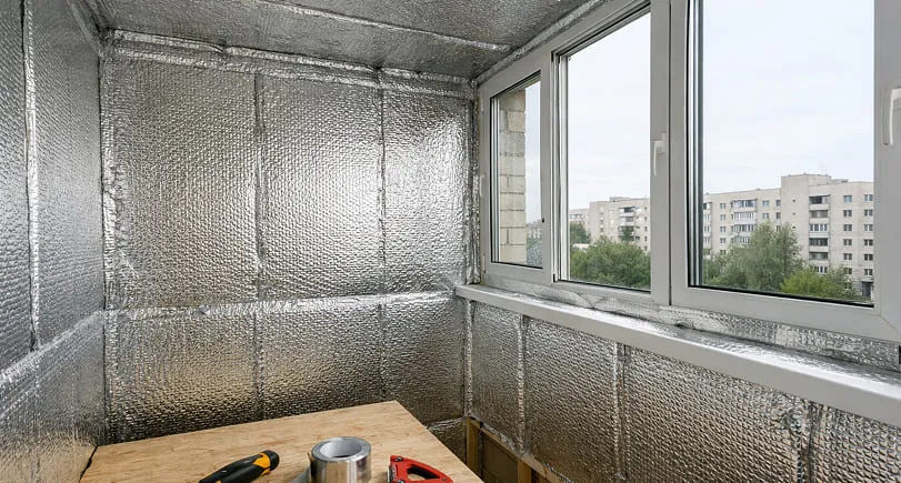 Материал применяется для утепления стен лоджии, пола и потолка, формируя герметичный теплоотражающий контур. За счёт небольшой толщины он идеально подходит, если требуется утеплить балкон изнутри без потери полезной площади.