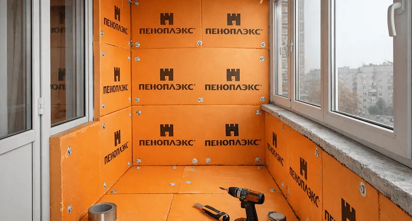 Пеноплекс — один из самых эффективных материалов для утепления балкона и лоджии под ключ. Экструдированный пенополистирол отличается высокой плотностью, минимальной теплопроводностью и долговечностью, что делает его лидером среди решений для теплоизоляции балкона.