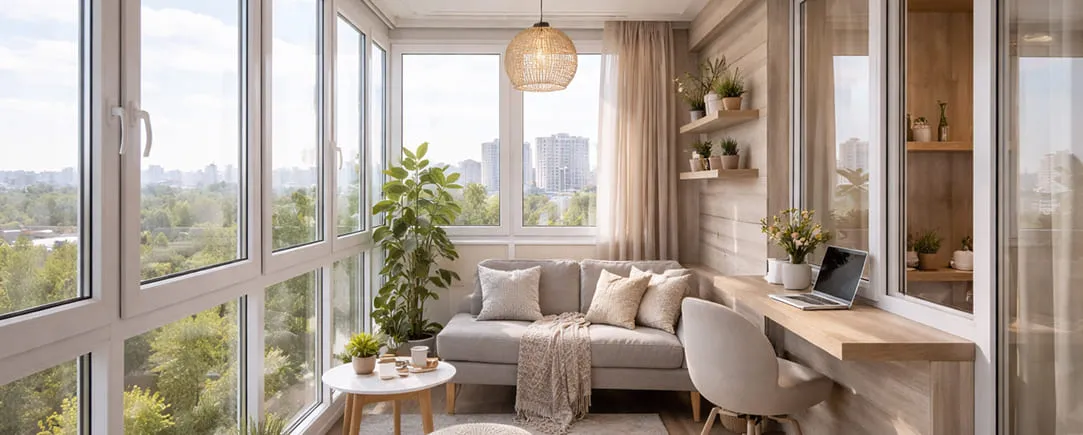 Тёплое остекление в сочетании с грамотной теплоизоляцией позволяет выполнить полноценное утепление балкона под ключ и превратить его в комфортное жилое пространство. Такой утеплённый балкон можно использовать круглый год — как рабочую зону, место отдыха или продолжение комнаты. При этом цена утепления балкона зависит от выбранных материалов, толщины слоя и особенностей объекта.