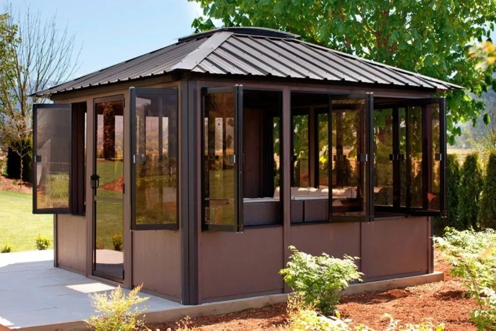 - Защита от осадков: При закрытых окнах ваша беседка остаётся сухой даже во время дождя.