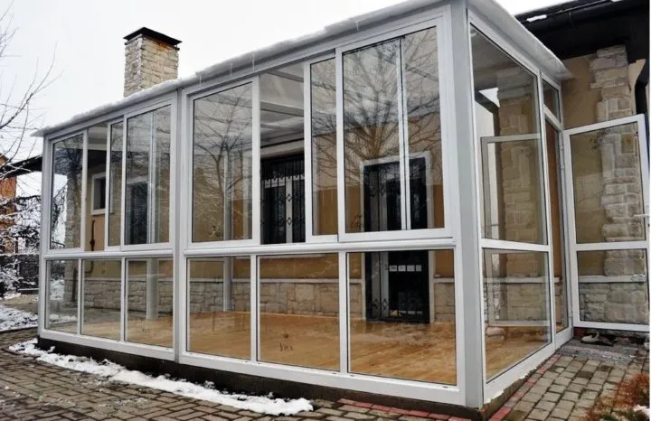 - Холодные. Изготавливаются из алюминиевого профиля и стекла. Идеально подходят для неотапливаемых помещений. Подобные модели защищают террасы от пыли, грязи, сквозняков и пр. В системе делаются открывающиеся створки, которые можно использовать для проветривания. К плюсам холодного остекления относится доступная цена и продолжительный срок службы.